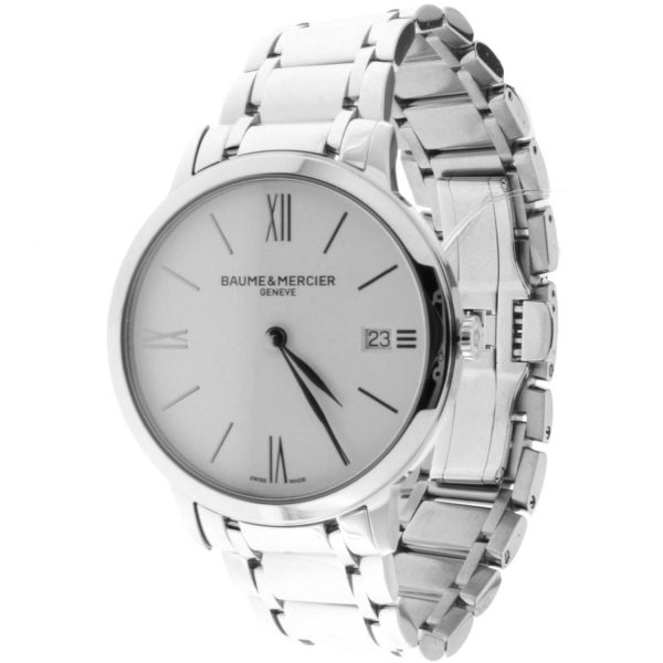 L’orologio da uomo Baume & Mercier Classima 36,5mm, referenziato con il codice M0A10356, incarna l’eleganza senza tempo del marchio. Caratterizzato da un quadrante bianco raffinato e una cassa in acciaio di alta qualità, questo orologio offre un design classico e sofisticato adatto a ogni occasione. La precisione del movimento al quarzo svizzero ETA E64.041 garantisce un’accuratezza impeccabile nel tempo, mentre la resistenza all’acqua fino a 50 metri lo rende un compagno affidabile per lo stile di vita attivo. Con dettagli curati e materiali pregiati, il Baume & Mercier Classima 36,5mm è un’opzione di classe per chi cerca un orologio di lusso senza tempo e di alta qualità.