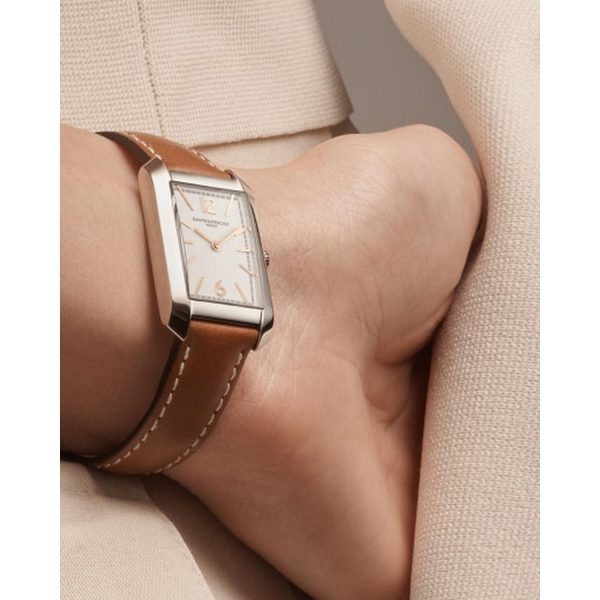 Esclusivo e raffinato, l’orologio da uomo Baume et Mercier Hampton 10472 incarna l’eleganza senza tempo del marchio. Caratterizzato da un quadrante bianco senza numeri, la cassa in acciaio dalle dimensioni di 22.2 mm x 34.9 mm si sposa armoniosamente con il cinturino in pelle marrone, chiuso da una fibbia ad ardiglione anch’essa in acciaio. Con movimento al quarzo e vetro zaffiro resistente ai graffi, questo modello vanta una resistenza all’acqua di 50 metri, garantendo prestazioni affidabili e durature. Un’opzione di classe per l’uomo moderno che apprezza la precisione e lo stile distintivo che solo Baume et Mercier sa offrire.