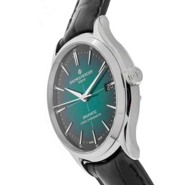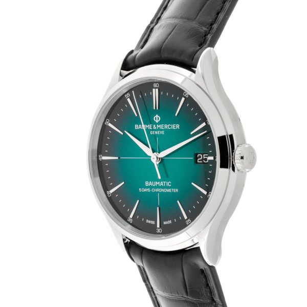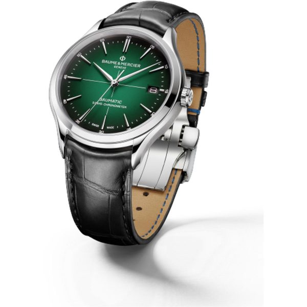 L’orologio Clifton 10592 di BAUME&MERCIER incarna l’eleganza intramontabile e la maestria artigianale di un marchio rinomato. Con cassa in acciaio di 40 mm e quadrante verde, questo modello automatico si distingue per la sua raffinata combinazione di materiali pregiati: acciaio per la cassa, pelle nera per il cinturino e vetro zaffiro resistente ai graffi. La chiusura in acciaio garantisce una perfetta vestibilitร , mentre la resistenza all’acqua fino a 50 metri lo rende adatto a ogni occasione. Dotato del calibro BM13-1975A COSC e 21 pietre, questo orologio rappresenta un’opera d’arte meccanica che esprime un’eccellenza senza tempo.