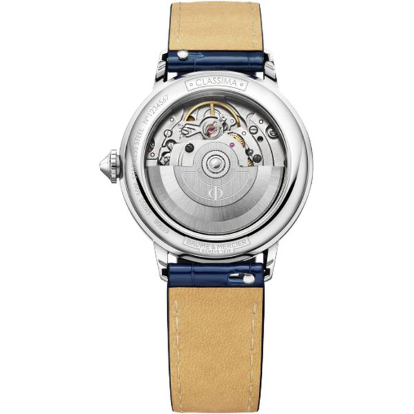 L’orologio da uomo Baume&Mercier M0A10633 della linea Classima 10633 rappresenta l’eccellenza dell’orologeria di lusso. Caratterizzato da una cassa in acciaio dalle dimensioni 34.4 x 28.4 mm e uno spessore di 10 mm, questo modello vanta un quadrante in madreperla dal design raffinato e un cinturino in pelle di colore blu, impreziosito dalla fibbia ad ardiglione in acciaio. La resistenza all’acqua fino a 50 metri assicura un utilizzo versatile, mentre il vetro zaffiro e il movimento automatico garantiscono prestazioni di alto livello. Con dettagli come la lunetta in acciaio, il calibro al quarzo e l’elegante chiusura, questo orologio si distingue per la sua classe e precisione, rappresentando un accessorio imprescindibile per l’uomo contemporaneo che ricerca l’eleganza in ogni dettaglio.