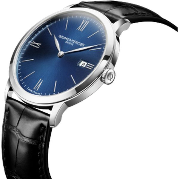L’orologio da uomo Baume & Mercier M0A10324 della collezione Classima incarna l’eleganza e la raffinatezza tipiche del marchio svizzero. Dotato di movimento al quarzo di precisione Swiss Made, questo modello vanta un design classico con cassa in acciaio di 40 mm e un quadrante di un intenso colore blu arricchito da numeri romani. Il cinturino in pelle nera conferisce un tocco di sofisticatezza, mentre il vetro zaffiro e la resistenza all’acqua fino a 50 metri ne garantiscono durata e affidabilitร . Perfetto per l’uomo moderno che apprezza dettagli di alta qualitร e stile senza tempo.