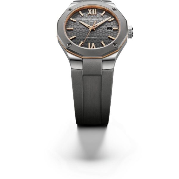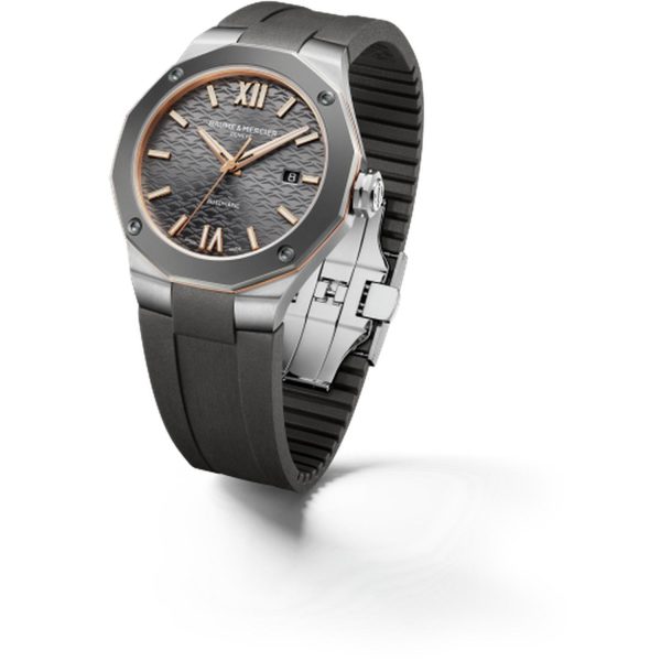 L’orologio da uomo Baume&Mercier M0A10660 della collezione Riviera incarna l’eleganza e la precisione artigianale che contraddistinguono il marchio. Con cassa in acciaio dalle dimensioni di 42.1 x 39.05 mm e uno spessore di 10.66 mm, questo modello automatico vanta un quadrante grigio senza numeri, sottolineando il suo design sofisticato e contemporaneo. Il cinturino in gomma nera offre comfort e resistenza, mentre la chiusura in acciaio assicura una perfetta tenuta al polso. Impermeabile fino a 100 metri, รจ ideale per accompagnare l’uomo moderno in ogni occasione. Il vetro zaffiro e il movimento Sellita SW200 con 26 pietre sottolineano la qualitร e la precisione di questo orologio unico, perfetto connubio tra stile e prestazioni. Elegante e distintivo, il Baume&Mercier M0A10660 รจ un’aggiunta pregi