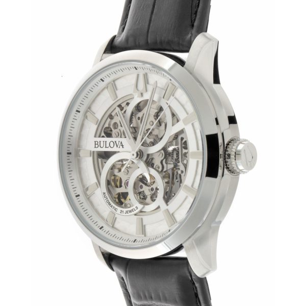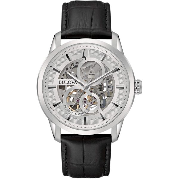 L’orologio da uomo BULOVA 96A266 della collezione Sutton Skeleton incarna l’eleganza e la raffinatezza in tutto il suo splendore. Dotato di un movimento automatico di precisione Miyota 8N26, questo orologio presenta un design scheletrato che rivela la complessità del suo meccanismo interno con un quadrante argentato e una cassa in acciaio resistente. Il cinturino in pelle nera conferisce un tocco di classe e comfort, mentre la chiusura déployante assicura una perfetta aderenza al polso. Con una resistenza all’acqua water resistant, questo orologio si distingue per il suo diametro di 43 mm e l’altezza di 12 mm, garantendo un look sofisticato e allo stesso tempo sportivo. Il modello 96A266 è un’icona di stile senza tempo, ideale per l’uomo moderno che apprezza l’arte dell’orologeria di alta gamma.