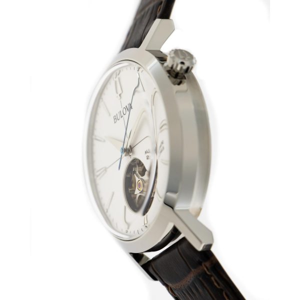 Lasciati affascinare dall’eleganza senza tempo dell’orologio da uomo Bulova Aerojet Automatic 38 mm, referenziato come 96A318. Un connubio di stile e precisione, questo modello incarna l’eccellenza artigianale del brand Bulova. La cassa in acciaio, con un diametro di 38 mm e un’altezza di 12 mm, racchiude un movimento automatico di alta qualitร che assicura prestazioni impeccabili. Il quadrante bianco senza numeri, protetto da vetro minerale, conferisce un tocco di raffinatezza, mentre il cinturino in pelle marrone completa l’estetica sofisticata di questo orologio. Resistente all’acqua e dotato di una chiusura a fibbia ardiglione in acciaio, il Bulova Aerojet Automatic รจ un’opzione ideale per gli uomini che apprezzano l’eccellenza e lo stile senza tempo.