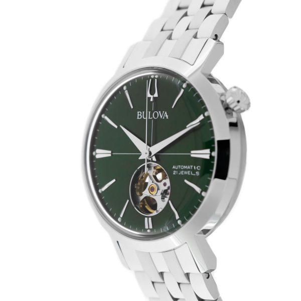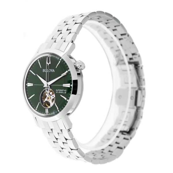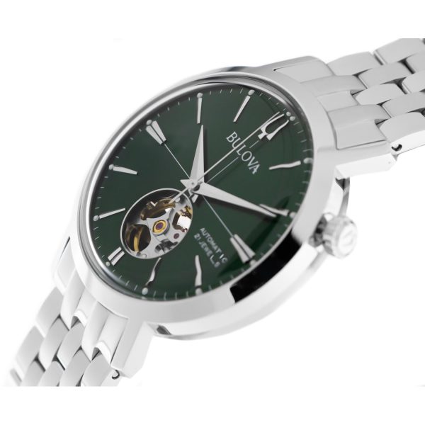 L’elegante orologio da uomo Bulova 96A319 della linea Aerojet incanta per il suo design raffinato e l’esclusiva tecnologia automatica di carica. Caratterizzato da un quadrante verde senza numeri, la cassa in acciaio di 38mm si sposa armoniosamente con il cinturino in acciaio color argento, garantendo un look sofisticato e senza tempo. Prodotto con materiali di alta qualitร e rifinito con una chiusura deployante con bottoni, questo orologio unisce stile e funzionalitร . Resistente all’acqua e dotato di vetro minerale, il Bulova 96A319 รจ un’opzione di classe per il gentleman moderno che apprezza l’eccellenza e la precisione.