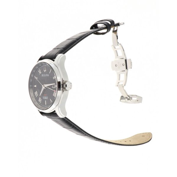 L’orologio da uomo BULOVA 96B387 della collezione Wilton GMT incarna l’eleganza e la precisione tipiche del marchio. Con una cassa in acciaio dal diametro di 43 mm e uno spessore di 12 mm, questo modello si distingue per il quadrante nero arricchito da 21 pietre, garantendo un tocco di raffinatezza senza tempo. Il movimento automatico assicura una performance impeccabile, mentre il vetro zaffiro e la resistenza all’acqua conferiscono durata e affidabilità. Il cinturino in pelle nera con chiusura Déployante aggiunge un tocco di sofisticatezza, rendendo questo orologio un’opzione ideale per gli uomini che apprezzano la fusione tra prestazioni di alto livello e stile distintivo.