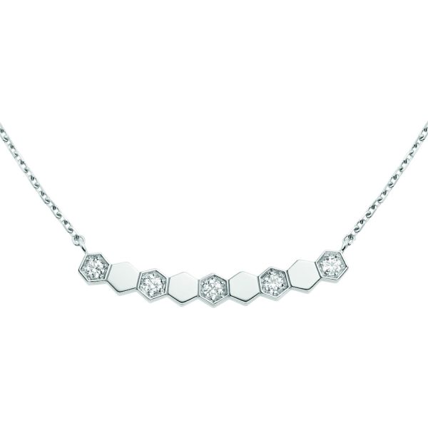 Lasciati incantare dalla bellezza senza tempo del pendente Bee My Love di Chaumet. Questo gioiello esclusivo incarna l’eleganza e l’artigianato raffinato che contraddistinguono il prestigioso brand francese. Realizzato in pregiato oro bianco e impreziosito da splendidi diamanti, il pendente 083982 cattura lo sguardo con la sua sofisticata semplicitร . Un dettaglio unico da indossare con orgoglio e classe, ideale per valorizzare ogni outfit con un tocco di raffinatezza e stile. Un’opera d’arte da indossare che trasmette l’eleganza senza tempo di Chaumet.