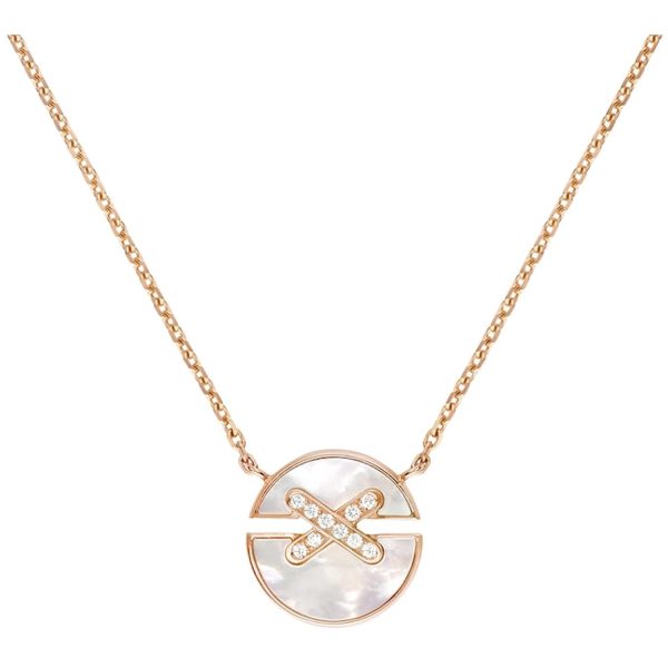L’elegante pendente Jeux de Liens Harmony di CHAUMET incarna la perfetta armonia tra tradizione e modernità. Realizzato in pregiato oro rosa e impreziosito da una delicata madreperla, questo gioiello rappresenta l’eccellenza artigianale e il savoir-faire unico del brand. Il design raffinato e intramontabile di questo componente lo rende un’aggiunta preziosa a qualsiasi collezione di gioielli di lusso. Indossalo con grazia e lasciati incantare dalla sua bellezza senza tempo.