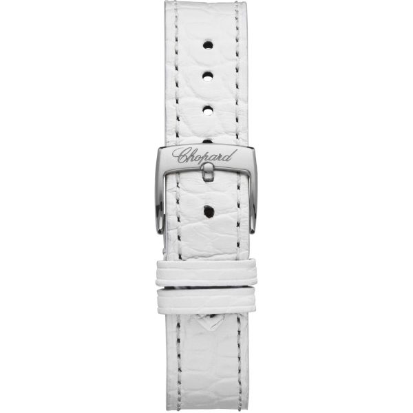 Esclusivo e raffinato, l’orologio da donna CHOPARD 278573-6018 della collezione Happy Sport incarna l’eleganza senza tempo del marchio svizzero. Caratterizzato da un quadrante in madreperla impreziosito da cinque diamanti flottanti, si distingue per la cassa in acciaio dalle linee delicate e il cinturino in pelle bianca, simbolo di sofisticata femminilitร . Con una resistenza all’acqua di 3 ATM e un diametro di 30 mm, questo gioiello meccanico รจ alimentato dal calibro automatico CHOPARD 09.01-C, garantendo precisione e prestazioni di alto livello. Un connubio armonioso di materiali pregiati e design impeccabile, capace di conquistare gli amanti dell’orologeria di lusso con la sua raffinata bellezza.