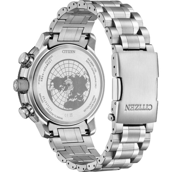 Il Citizen Geo Trekker BY3006-53E incarna l’eccellenza di design e tecnologia. Appartenente alla linea Promaster, questo orologio da uomo è alimentato dalla tecnologia Eco Drive, garantendo precisione e affidabilità senza necessità di cambio batteria. La cassa in acciaio racchiude un quadrante nero senza numeri, protetto da vetro zaffiro resistente ai graffi. Il cinturino in acciaio argentato e la chiusura déployante conferiscono un tocco di eleganza e praticità. Con una resistenza all’acqua di 20 bar e un diametro di 46 mm, questo modello si distingue per la sua funzionalità e design raffinato, rappresentando l’epitome dell’artigianato orologiero di alta gamma.