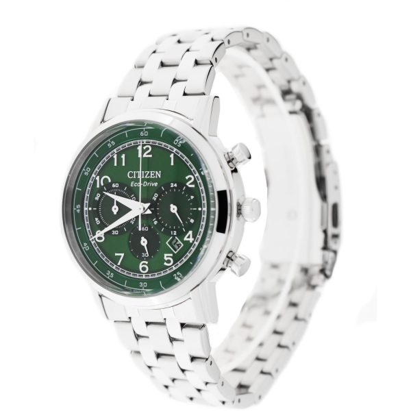 Raffinato e intramontabile, l’orologio da uomo Citizen CA4630-53X della collezione Chrono Classic incarna l’eccellenza dell’artigianato orologiero. Caratterizzato da un design sofisticato, questo modello vanta una cassa in acciaio che incornicia un quadrante di elegante tonalitร verde, conferendo un tocco di classe e originalitร . Dotato di movimento al quarzo per una precisione impeccabile, questo orologio rappresenta la sintesi perfetta tra funzionalitร e stile. Il cinturino in acciaio, dal colore argentato, completa l’ensemble con raffinatezza e comfort. Un’opera d’arte meccanica destinata a brillare al polso di chi apprezza il lusso senza tempo.