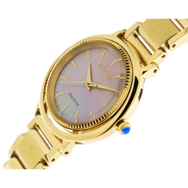 L’eleganza e la precisione si fondono in perfetta armonia nell’orologio da donna Citizen EM1103-86Y della collezione Arcly. Caratterizzato da un raffinato design Lady, questo modello vanta un movimento Eco Drive che garantisce una carica autonoma e sostenibile. Il quadrante in madreperla si sposa con la cassa in acciaio e il cinturino color oro rosa, conferendo al tempo un tocco di sofisticata luminosità. Resistente all’acqua e dotato di vetro zaffiro anti-graffio, questo orologio rappresenta un’eccellenza tecnica e estetica. Con chiusura déployante e diametro cassa di 31 mm, il Citizen EM1103-86Y è un prezioso complemento che incarna l’essenza dell’artigianato orologiero di alta gamma.