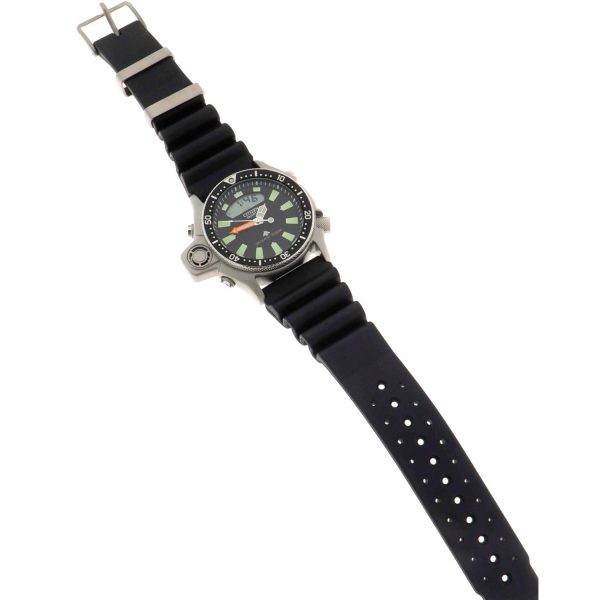 L’orologio da uomo Citizen JP2000-08E della collezione Aqualand I incarna l’eccellenza e la precisione tipiche del marchio giapponese. Dotato del modello Promaster, questo orologio al quarzo è caratterizzato da un design elegante con quadrante nero e cassa in acciaio, abbinata a un cinturino in caucciù nero per un comfort ottimale. Resistente all’acqua secondo gli standard Diver’s ISO, è ideale per gli amanti degli sport acquatici. La chiusura a fibbia con ardiglione e la lunetta in acciaio conferiscono un tocco di raffinatezza, mentre il vetro minerale assicura durata e resistenza. Con un diametro di cassa di 44 mm e un’altezza di 14 mm, questo orologio unisce stile e funzionalità con il calibro C520 e il numero di riferimento JP2000-08E, per un’eleganza senza tempo.