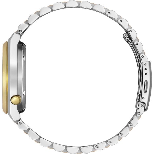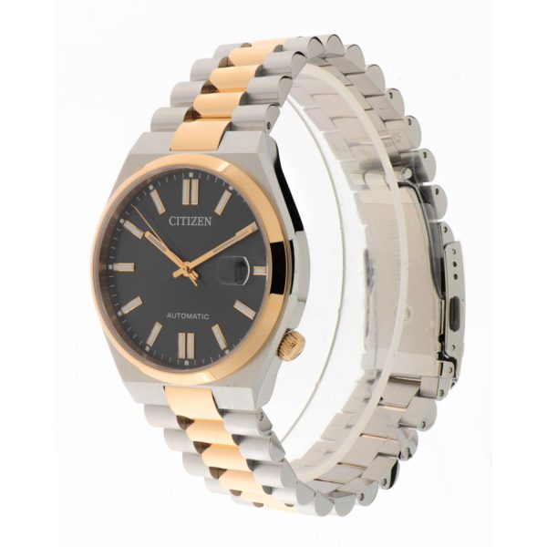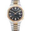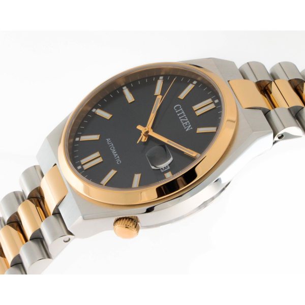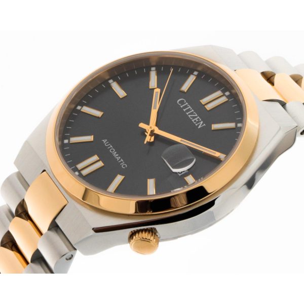 L’orologio da uomo Citizen NJ0154-80H della collezione Meccanico Tsuyosa incarna l’eleganza e la precisione tipiche del brand giapponese. Dotato di movimento automatico di calibro 8200, questo modello vanta una cassa in acciaio dal diametro di 40 mm e un raffinato cinturino bicolore oro in acciaio. Il quadrante nero senza numeri, protetto da vetro zaffiro, conferisce un tocco di modernità e sobrietà. Resistente all’acqua e dotato di chiusura déployante, questo orologio unisce funzionalità e stile in un design senza tempo. Un’ottima scelta per chi ricerca un accessorio di alta qualità che rifletta il proprio gusto sofisticato e raffinato.