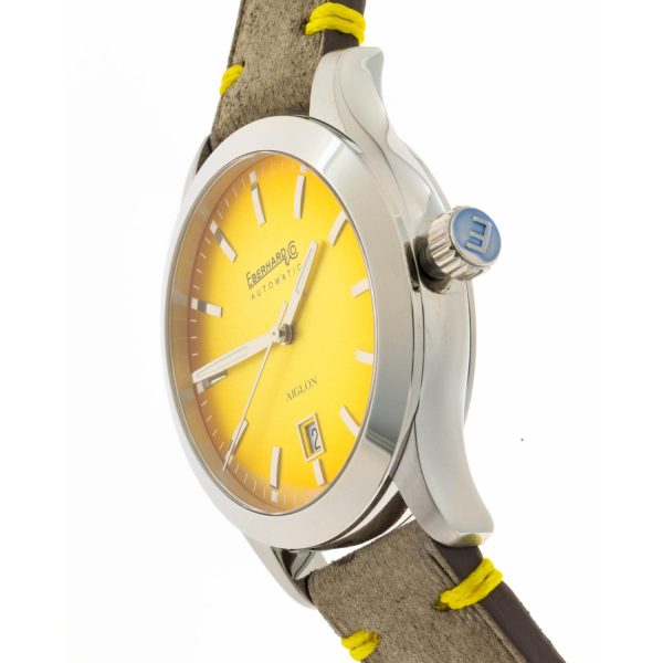 L’eleganza intramontabile e la precisione tecnica si fondono nell’orologio da uomo Eberhard AIGLON COLORS, referenziato come 41030.SECP.16. Caratterizzato da un quadrante giallo sfumato soleil e una cassa in acciaio dal diametro di 41 mm, questo orologio automatico incarna la maestria artigianale di Eberhard. Il cinturino in pelle marrone conferisce un tocco di raffinatezza, mentre la resistenza all’acqua fino a 5 ATM assicura versatilitร e funzionalitร . Con dettagli curati e una chiusura ardiglione in acciaio, questo modello rappresenta un’opzione di prestigio per l’uomo moderno alla ricerca di stile e prestazioni senza compromessi.