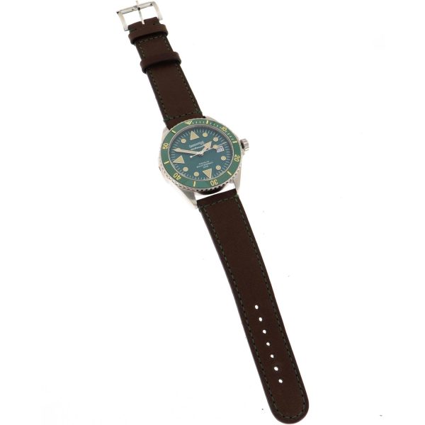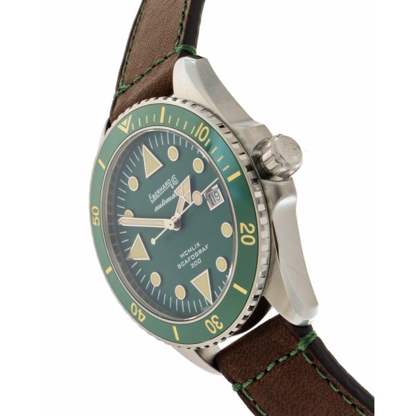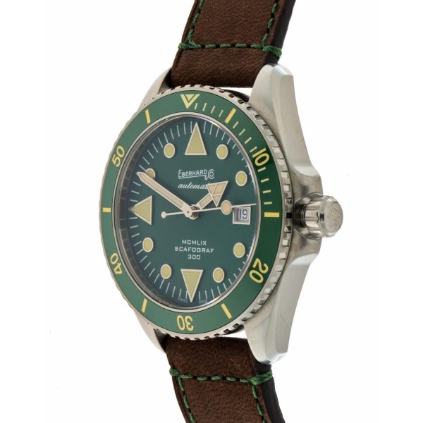 L’orologio da uomo EBERHARD 41034.VSCP.09 della collezione Scafograf 300 MCMLIX incarna l’eleganza e la precisione artigianale del marchio Eberhard. Con cassa in acciaio dal diametro di 43 mm e quadrante verde senza numeri, si distingue per il cinturino in pelle marrone e la lunetta in ceramica. Dotato di movimento automatico di calibro superiore, vetro zaffiro e resistenza all’acqua fino a 30 ATM, questo segnatempo rappresenta un connubio equilibrato tra design raffinato e prestazioni affidabili. La chiusura ad ardiglione in acciaio conferisce un tocco di classe ulteriore a questo orologio di prestigio, perfetto per gli amanti dell’alta orologeria che apprezzano l’eccellenza e lo stile distintivo di Eberhard.