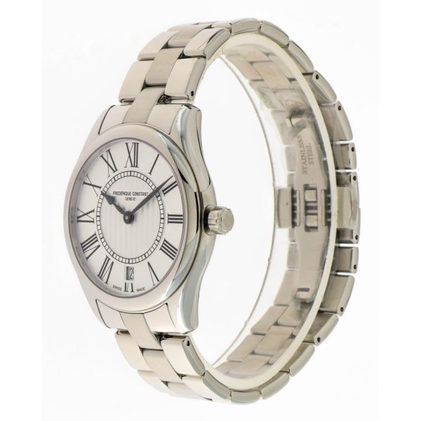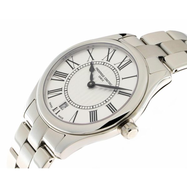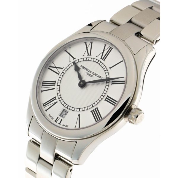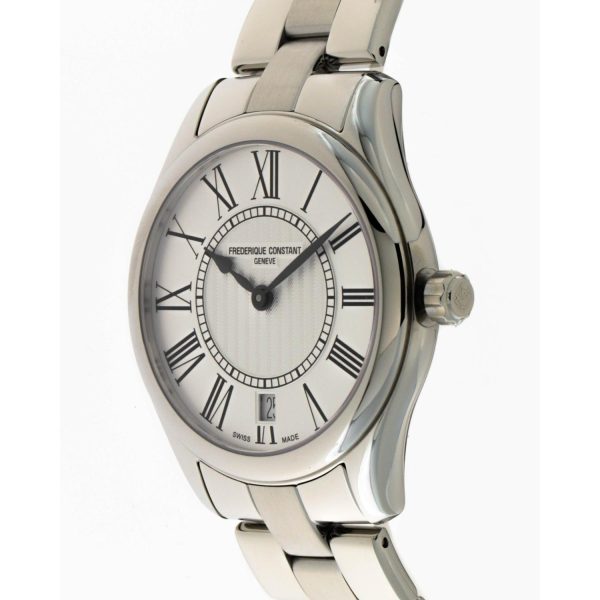 L’orologio da donna Frederique Constant FC-220MS3B6B della collezione Classics Ladies incarna l’eleganza e la raffinatezza tipiche del marchio svizzero. Caratterizzato da un quadrante argento impreziosito da numeri romani, la cassa in acciaio da 36 mm e l’altezza di soli 7.75 mm conferiscono al modello una silhouette sobria e femminile. Il movimento al quarzo garantisce precisione nel segnare il tempo, mentre il vetro zaffiro e la resistenza all’acqua fino a 5 ATM assicurano durata e affidabilità. Il cinturino in pelle color argento e la chiusura déployante in acciaio completano l’orologio, rendendolo un accessorio di classe per una donna sofisticata e attenta ai dettagli.
