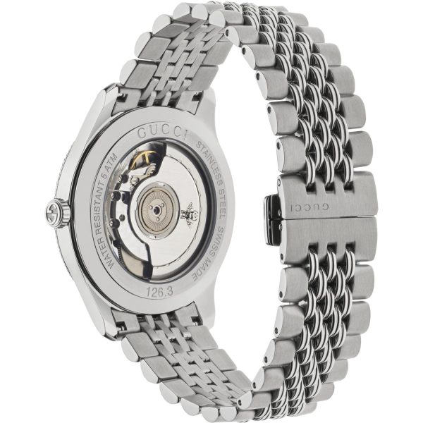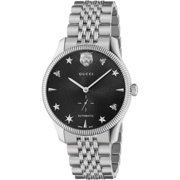 Elegante e sofisticato, l’orologio da uomo Gucci YA126353 della collezione G-Timeless Slim incarna l’eccellenza artigianale e il design distintivo del brand. Caratterizzato da un elegante quadrante nero guilloché con piccolo contatore dei secondi e cassa in acciaio, questo orologio automatico è un’intrigante sintesi di stile e funzionalità. Il bracciale a 7 maglie in acciaio conferisce un tocco di raffinatezza e comfort, mentre il vetro zaffiro garantisce resistenza e durata nel tempo. Con una resistenza all’acqua fino a 5 ATM (160 piedi/50 metri), il Gucci YA126353 è un’aggiunta imprescindibile alla collezione di ogni uomo che apprezzi la qualità e l’estetica senza tempo.