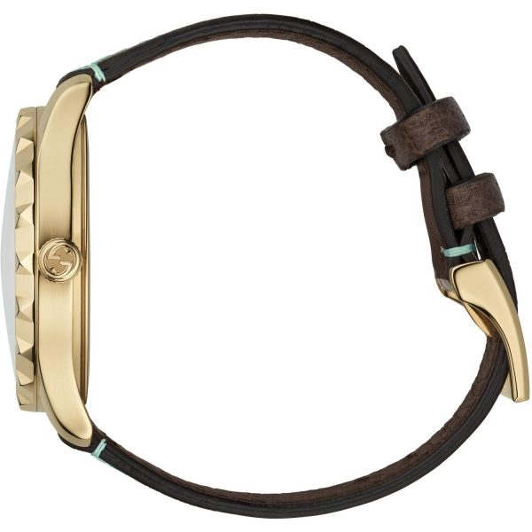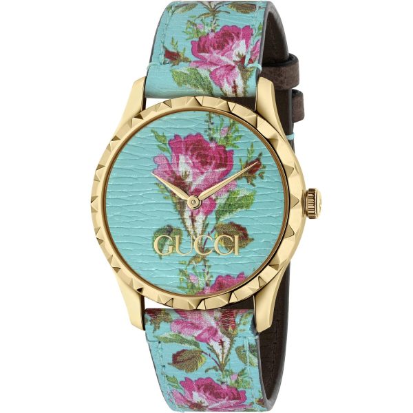 Esclusivo e raffinato, l’orologio da donna Gucci YA1264085 della collezione G-Timeless incanta con la sua eleganza contemporanea. Il case e lunetta in PVD color oro giallo impreziositi da borchie si sposano armoniosamente con il quadrante in pelle Shanghai aquamarina e il cinturino stampato con motivi floreali. Dotato di movimento al quarzo, questo orologio vanta una resistenza all’acqua fino a 5 ATM (160 piedi/50 metri) e un vetro zaffiro che garantisce durata e nitidezza nel tempo. Un complemento di stile senza tempo, simbolo dell’artigianalitร e dell’estetica distintiva del marchio Gucci.
