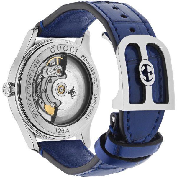L’orologio da uomo Gucci YA1264214 della collezione G-Timeless con motivo ape è un capolavoro di eleganza e artigianalità. Caratterizzato da una cassa in acciaio da 38 mm, un quadrante argento con raffinati dettagli di api e un cinturino in pelle di alligatore blu, questo orologio incarna lo stile distintivo del marchio Gucci. Dotato di movimento automatico e resistenza all’acqua fino a 50 metri, è un accessorio che unisce design e funzionalità in modo impeccabile. Con la sua chiusura déployante in acciaio e vetro zaffiro resistente ai graffi, questo orologio rappresenta un’eccellenza senza tempo che sicuramente catturerà l’attenzione di chi ama il lusso raffinato e la qualità superiore.