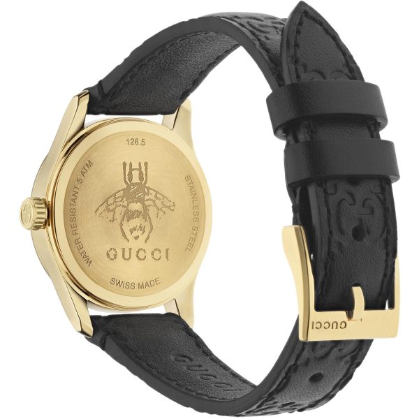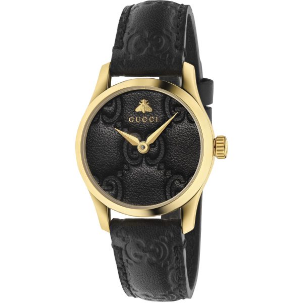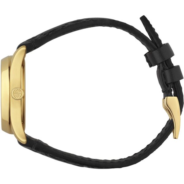 Gucci – YA126581A – G-Timeless Signature Yellow gold PVD case, black Gucci Signature leather dial and strap