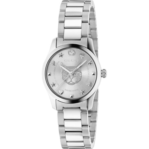 Gucci – YA126595 – G-Timeless Iconic Steel case, silver dial with feline head motif, steel bracelet