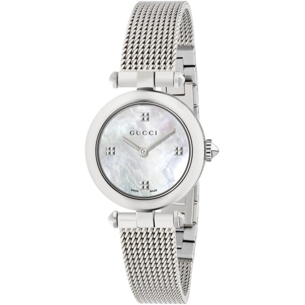L’orologio GUCCI YA141504 della collezione Diamantissima incarna l’eleganza e lo stile distintivo del marchio italiano. Con cassa in acciaio, quadrante madreperla bianco e bracciale a maglie in acciaio, questo orologio da uomo è un’opera d’arte senza tempo. La carica al quarzo assicura una precisione impeccabile, mentre la resistenza all’acqua fino a 50 metri lo rende adatto a qualsiasi occasione. Il vetro zaffiro e la chiusura déployante in acciaio conferiscono un tocco di raffinatezza e durata a questo accessorio di lusso. Con un diametro di 27 mm, questo orologio combina design sofisticato e prestazioni impeccabili, perfetto per chi apprezza la bellezza e la qualità artigianale dei prodotti GUCCI.