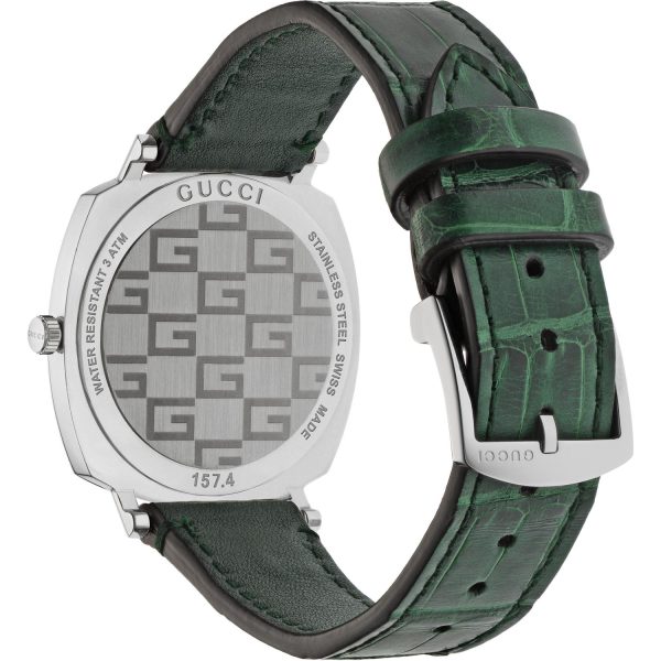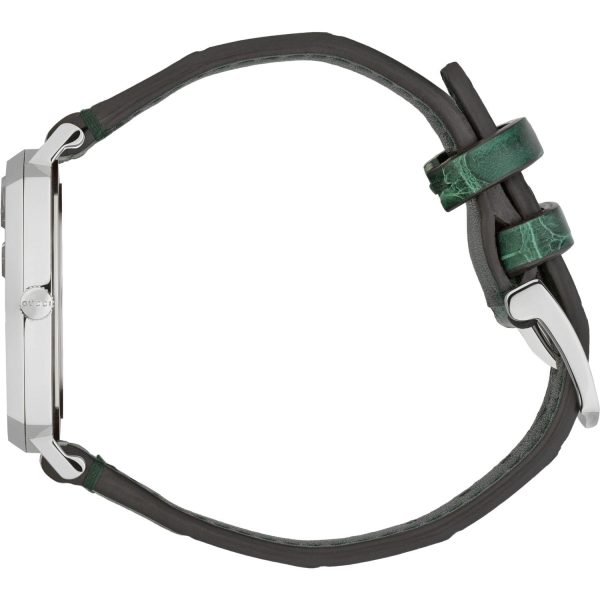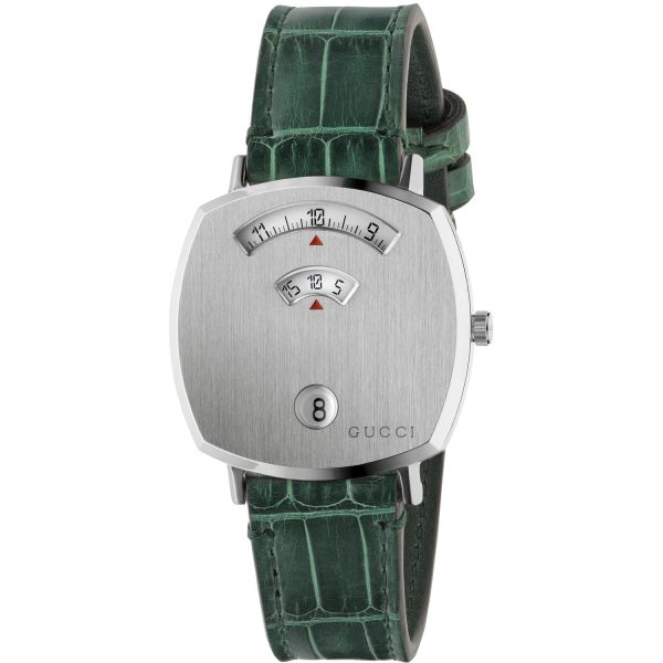 GUCCI – YA157404 – Grip Steel case, 3 windows indicating hour, minute & date, green alligator strap