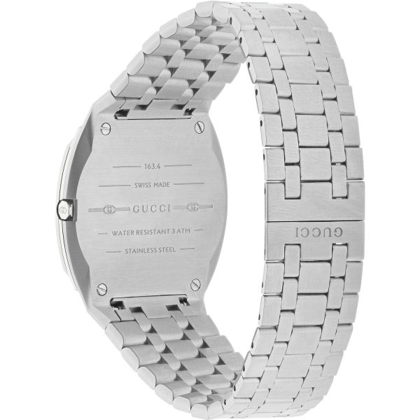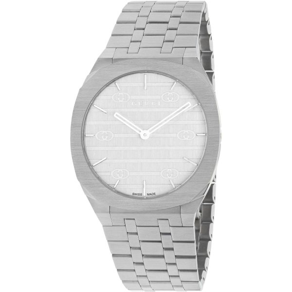 L’orologio da uomo GUCCI YA163407 incarna l’eleganza e lo stile distintivo del marchio. Dotato di un’accurata costruzione in acciaio inossidabile, il quadrante argentato con logo GG aggiunge un tocco di raffinatezza. Il bracciale a cinque maglie in acciaio conferisce robustezza e comfort, mentre la chiusura déployante assicura una perfetta aderenza al polso. Con resistenza all’acqua fino a 3 ATM, vetro zaffiro e movimento al quarzo, questo orologio è un connubio di prestazioni e design senza tempo. Un accessorio di lusso che esprime personalità e classe in ogni dettaglio, perfetto per chi apprezza il lato più sofisticato dell’orologeria.