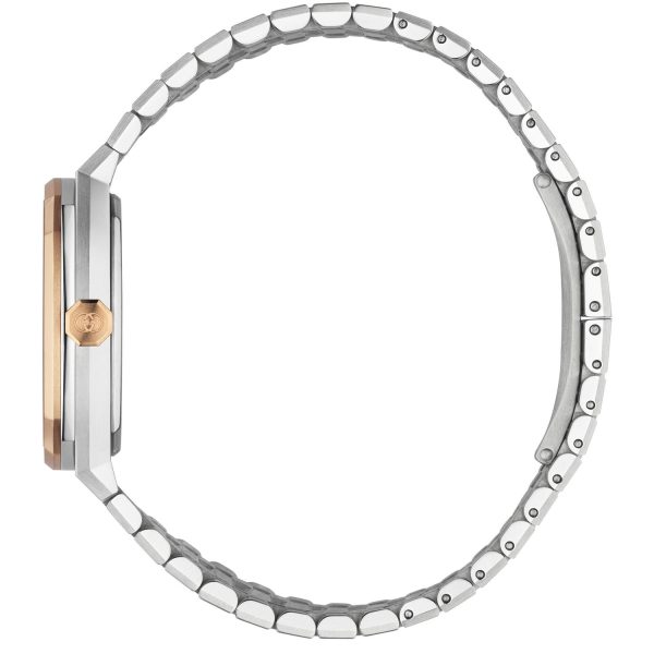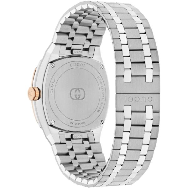 Gucci – YA163508 – Gucci 25H 30 mm stainless steel multi layered case, pink gold-plated bezel, silver dial, date opening, stainless steel five links interchangeable bracelet, quartz movement