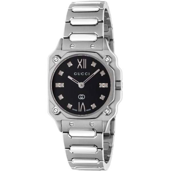 Lasciati affascinare dall’eleganza senza tempo dell’orologio GUCCI YA166507. Con un raffinato quadrante nero galvanizzato impreziosito da indici romani alle ore 12 e 6 e da 12 diamanti, questo orologio da uomo incarna l’eccellenza artigianale e il lusso distintivo del marchio Gucci. Il robusto case in acciaio inossidabile da 24 mm si sposa armoniosamente con il bracciale in acciaio, conferendo un tocco di classe e sofisticatezza ad ogni look. Dotato di movimento al quarzo e resistente all’acqua fino a 50 metri, il modello YA166507 è un’opera d’arte da indossare con orgoglio in ogni occasione, manifestando un’eleganza senza tempo e uno stile inconfondibile.