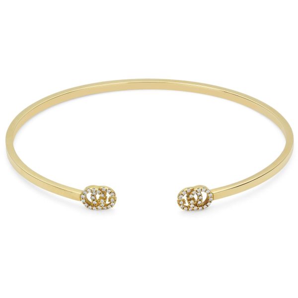 Il bracciale GG Running cuff di Gucci incarna l’eleganza intramontabile del marchio italiano, coniugando materiali pregiati e design raffinato. Realizzato in oro giallo 18 carati e impreziosito da diamanti, questo gioiello rappresenta un’ode alla sofisticatezza e all’esclusività. Il logo GG, simbolo distintivo di Gucci, si intreccia con maestria lungo la superficie del bracciale, conferendo un tocco di glamour unico e inconfondibile. Un’opera d’arte da indossare, capace di conferire un’eleganza senza tempo a ogni look. Il bracciale Gucci GG Running cuff è un’incarnazione perfetta della maestria artigianale e del prestigio che contraddistinguono il marchio, rendendolo un’icona di stile imprescindibile per gli amanti del lusso e della bellezza.