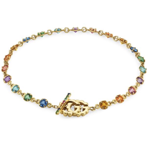 Risplendi di eleganza e stile con il bracciale GG Running di Gucci, un’opera d’arte in oro giallo 18kt impreziosita da topazi, quarzi, tsavoriti e zaffiri. Un gioiello che incarna l’eccellenza artigianale e il design unico del brand. La silhouette brillante e lussuosa di questo bracciale trasmette un’eleganza senza tempo, perfetta per chi desidera distinguersi con classe e raffinatezza. Un accessorio prezioso che conferirร un tocco di lusso e sofisticatezza ad ogni tua mise. Lasciati conquistare dalla bellezza e dalla maestria artigianale di Gucci.