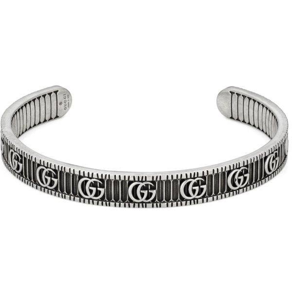 Elegante e raffinato, il bracciale in argento sterling invecchiato con motivo a doppia G di Gucci è un’opera d’arte che incarna l’eleganza senza tempo del marchio. La lavorazione artigianale di alta qualità e il design iconico conferiscono a questo gioiello un fascino unico, perfetto per chi cerca un tocco di lusso discreto ma distintivo. Realizzato con materiali pregiati, questo bracciale si distingue per la sua eleganza senza tempo, rendendolo un’aggiunta perfetta alla collezione di chi apprezza il meglio della moda e del design. Con il suo stile inconfondibile, il bracciale Gucci con motivo a doppia G è un’opzione di classe per chi desidera distinguersi con stile e raffinatezza.