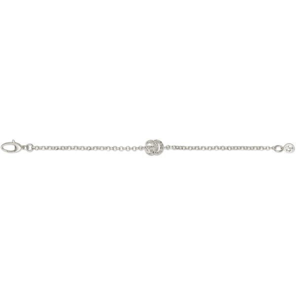 Il bracciale in argento sterling con charm Double G di Gucci incarna l’eleganza senza tempo e lo stile distintivo del marchio. Realizzato con cura artigianale e materiali di alta qualità, questo gioiello rappresenta un’icona di classe e raffinatezza. La silhouette pulita e minimalista del bracciale si sposa armoniosamente con il simbolo distintivo della doppia G, conferendo un tocco di modernità e sofisticatezza. Indossare questo bracciale significa abbracciare l’estetica unica di Gucci e aggiungere un tocco di lusso discreto e sottile al proprio look. Perfetto per completare un outfit elegante o per regalare un tocco di glamour a un look più casual, questo bracciale è un must-have per chi cerca un’accessorio di classe e di alta qualità.