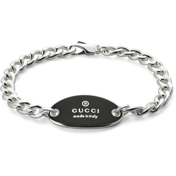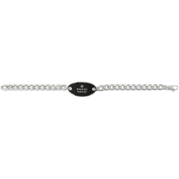 Esclusivo e raffinato, il bracciale Gucci della collezione Trademark incanta con la sua eleganza senza tempo. Realizzato in pregiato argento, presenta una placca ovale smaltata di nero, impreziosita dall’iconico logo del brand. Un gioiello che incarna l’eccellenza artigianale di Gucci e si distingue per il suo design distintivo e sofisticato. Indossalo per un tocco di classe in ogni occasione, per un look che trasuda stile e raffinatezza. Il bracciale Gucci รจ un’opera d’arte da indossare con fierezza e orgoglio, simbolo di un’eleganza senza tempo e di un gusto sofisticato.