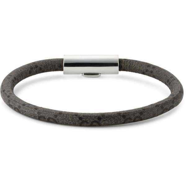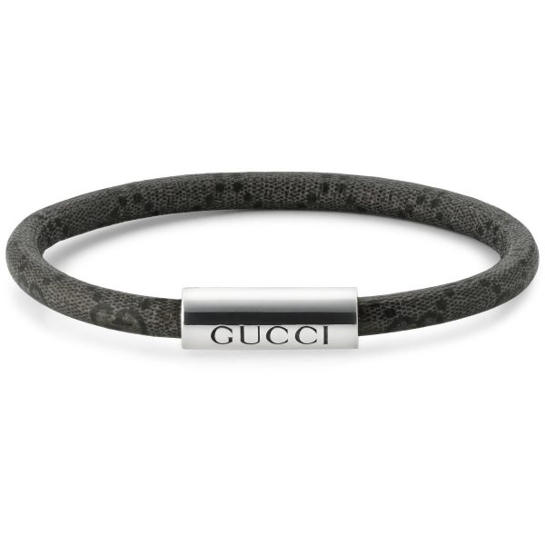 GUCCI – YBA797156002 – Trademark Bracelet in gray – black GG Supreme canvas and sterling silver