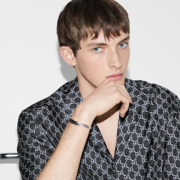 Il bracciale Gucci Tag in argento sterling e gomma nera è un’elegante espressione di stile distintivo e raffinato. Appartenente alla collezione di gioielli Gucci, questo pezzo esclusivo incarna l’iconica fusione di design innovativo e artigianato di alta qualità del marchio. Con il caratteristico logo Gucci impresso sul tag nero gommoso, questo bracciale rappresenta un’interpretazione contemporanea dell’estetica intramontabile della maison. Realizzato con materiali pregiati, questo gioiello è un’aggiunta sofisticata e versatile alla tua collezione di accessori di lusso. Con il suo design unico e lussuoso, il bracciale Gucci Tag si distingue come un’opzione di classe per chi cerca un tocco di eleganza senza tempo.