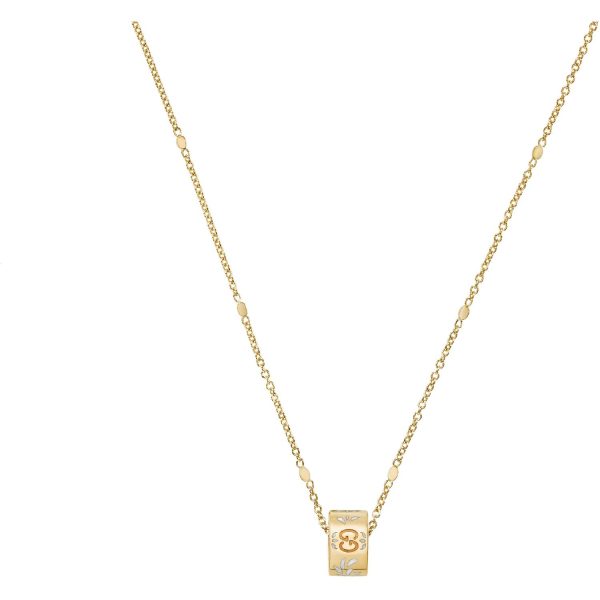 Distinguiti con un’eleganza senza tempo indossando la collana iconica GUCCI in oro giallo 18 carati e smalto bianco. Un capolavoro di artigianato, questa collana incarna l’essenza del lusso e dello stile distintivo del brand Gucci. Un gioiello prezioso e raffinato, perfetto per chi cerca un tocco di classe e sofisticatezza in ogni occasione. Con la sua silhouette unica e lussuosa, questa collana รจ un’opera d’arte da indossare con fierezza e sicurezza. Aggiungi un tocco di glamour e raffinatezza al tuo look con questo gioiello senza tempo firmato Gucci.