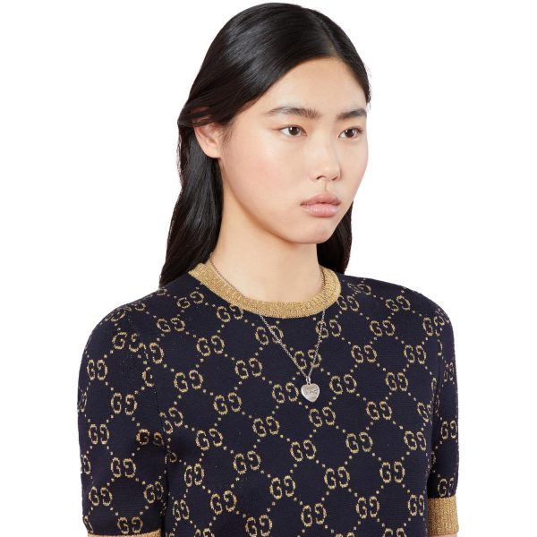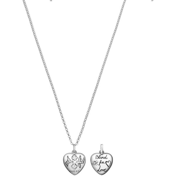Lasciati incantare dalla sofisticata eleganza del brand Gucci con la collana “Blind for Love” YBB455542001. Realizzata in luminoso argento invecchiato, si distingue per il pendente a forma di cuore inciso con fiori e uccelli, simboli di amore e libertà. Un gioiello che cattura l’essenza del romanticismo e della femminilità, perfetto per aggiungere un tocco di raffinatezza ad ogni outfit. Indossa questa collana e lasciati trasportare dall’inconfondibile stile e dall’eccellenza artigianale di Gucci.