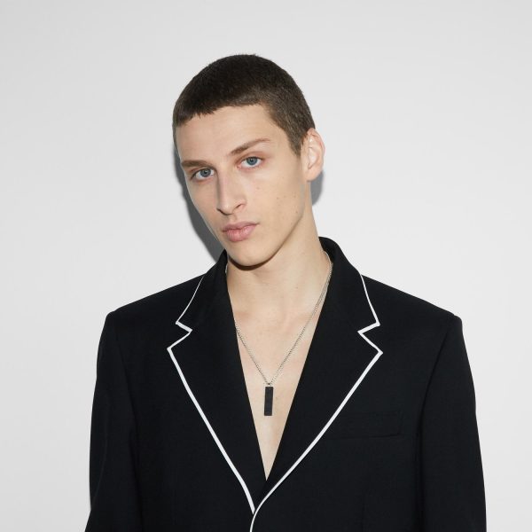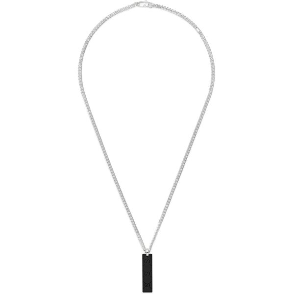Lasciati affascinare dalla raffinatezza senza tempo della collana Gucci Tag. Realizzata in pregiato argento sterling e arricchita da un’elegante placca in gomma nera, questo gioiello incarna l’eccellenza artigianale e lo stile distintivo del brand Gucci. Con una lunghezza regolabile tra 50 e 55 cm, si adatta perfettamente a ogni occasione, conferendo un tocco di classe e personalitร al tuo look. Un accessorio iconico che unisce tradizione e modernitร , perfetto per chi ricerca un’eleganza senza tempo e un design unico.