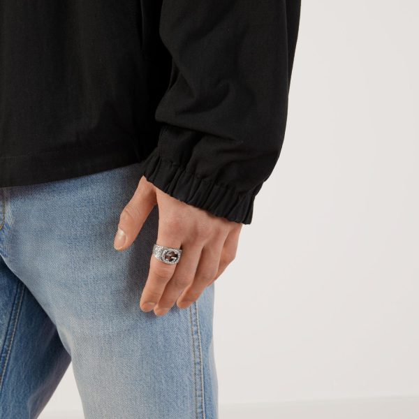 Lasciati affascinare dall’eleganza senza tempo di Gucci con l’anello YBC455302001 in argento sterling invecchiato. Un gioiello che cattura lo spirito distintivo del brand attraverso l’iconico motivo a G intrecciato. Realizzato con maestria artigianale, questo anello incarna l’eccellenza e il lusso che contraddistinguono Gucci. Un complemento perfetto per chi ricerca un tocco di raffinatezza e stile in ogni occasione. Aggiungi un tocco di classe al tuo outfit con questo gioiello unico e sofisticato.