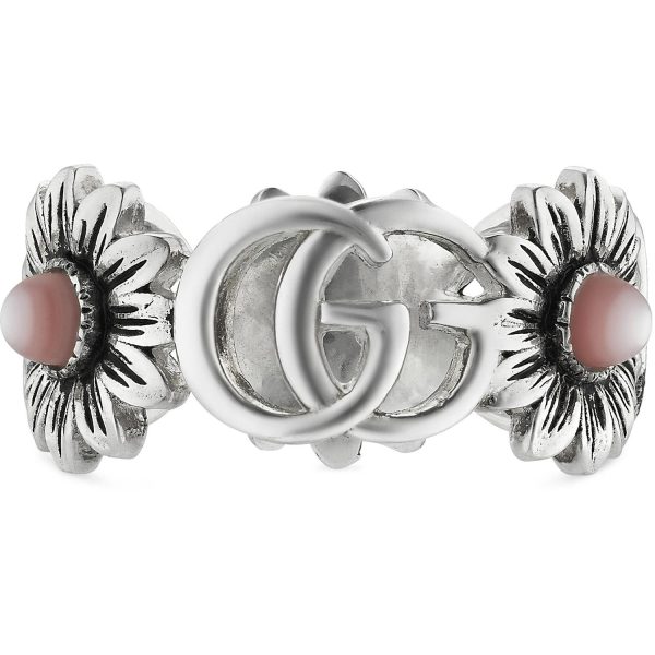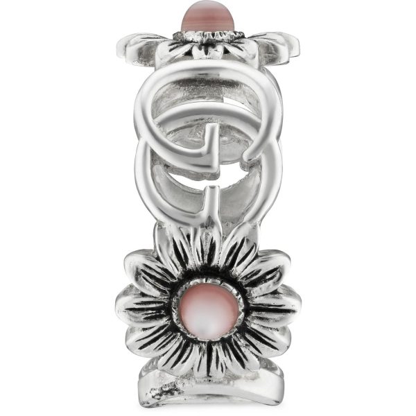 Lasciati avvolgere dall’eleganza senza tempo del Gucci GG Marmont Ring con Double G e motivo floreale in madreperla rosa e argento sterling. Realizzato con maestria artigianale e cura dei dettagli, questo anello incarna l’iconico stile distintivo del brand Gucci. Il design raffinato e sofisticato si fonde armoniosamente con la lucentezza dell’argento sterling, creando un gioiello unico che cattura lo sguardo e si distingue per la sua bellezza senza tempo. Un’aggiunta preziosa alla tua collezione di gioielli, questo anello Gucci si rivela un’opera d’arte da indossare con orgoglio e raffinatezza in ogni occasione.