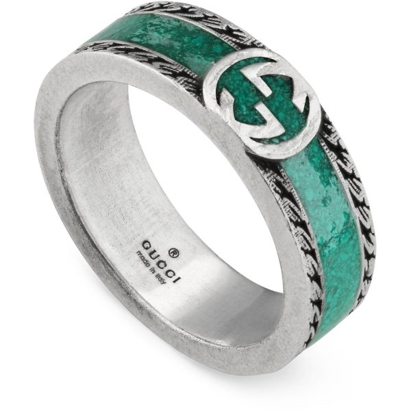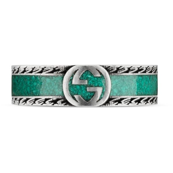 Gucci – YBC645573001 – Interlocking G Ring with motif in sterling silver and turquoise enamel