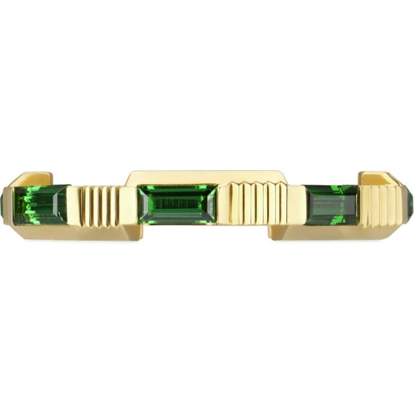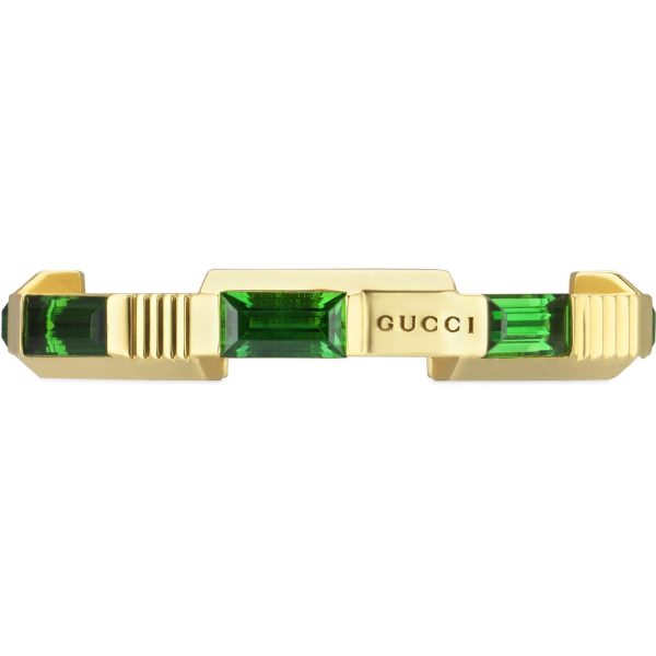 Immergiti nell’eleganza senza tempo con l’anello Gucci YBC662256002 della collezione Link to Love. Realizzato in raffinato oro giallo 18kt e impreziosito da una lussureggiante pietra di tormalina verde, questo gioiello incarna l’inconfondibile stile e l’artigianalità di alta classe del brand Gucci. La forma baguette conferisce un’eleganza unica, mentre la referenza YBC662256002 sottolinea l’autenticità e la qualità di questo capolavoro. Un anello che si distingue per la sua sofisticata bellezza e che aggiungerà un tocco di lusso e raffinatezza ad ogni look. Lasciati conquistare dalla magia di Gucci e regala al tuo outfit un tocco di classe senza tempo.