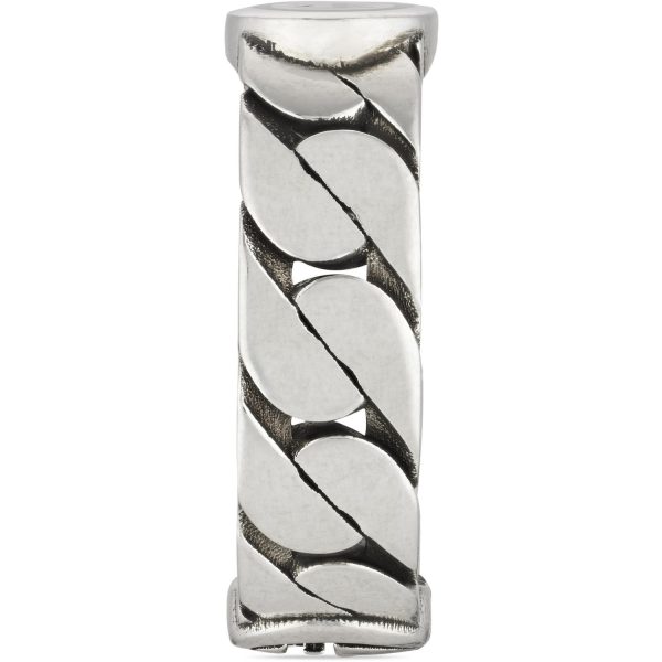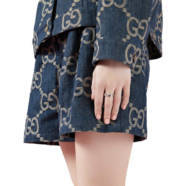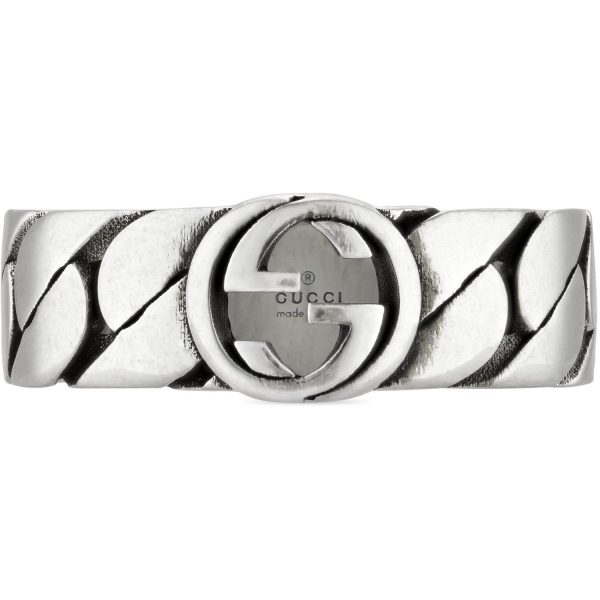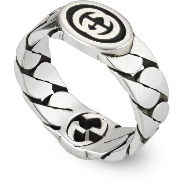 Lasciati avvolgere dall’eleganza senza tempo del Gucci Interlocking G Ring. Realizzato in pregiato argento sterling e impreziosito da dettagli in smalto nero, questo anello incarna l’essenza sofisticata e raffinata del marchio Gucci. Con il suo design distintivo e riconoscibile, questo gioiello si distingue per la sua allure unica e versatile, perfetta per aggiungere un tocco di stile senza tempo a ogni outfit. Un accessorio iconico che esprime l’eccellenza artigianale e il savoir-faire di Gucci nel mondo dei gioielli di lusso.
