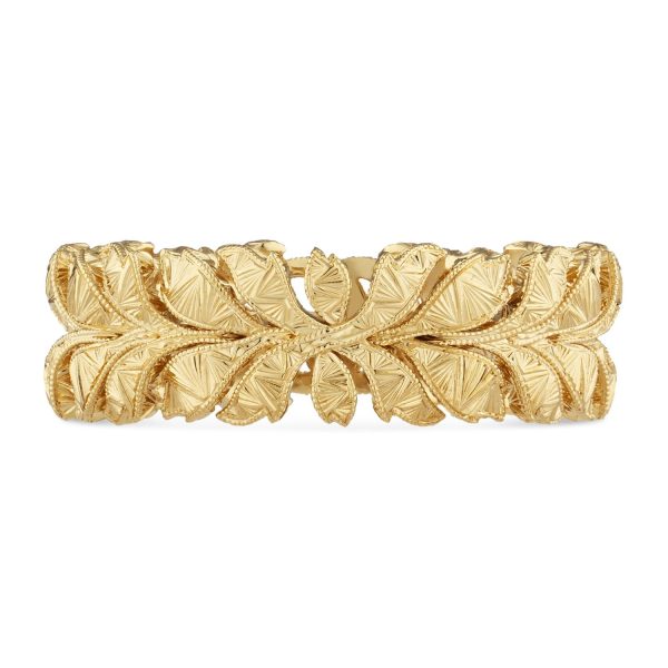 L’esclusivo anello Flora di Gucci incarna l’eleganza senza tempo e la raffinatezza distintiva del marchio. Realizzato in pregiato oro giallo 18kt e impreziosito da luminosi diamanti, questo gioiello rappresenta un’ode alla bellezza e alla femminilità. Il design unico e sofisticato di questo anello cattura lo sguardo con la sua silhouette senza tempo, conferendo un tocco di lusso e glamour ad ogni outfit. Un’opera d’arte che unisce maestria artigianale e stile iconico, il Flora ring di Gucci è un simbolo di classe e raffinatezza per le donne che apprezzano la bellezza autentica e senza tempo dei gioielli di alta moda.