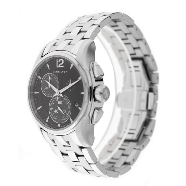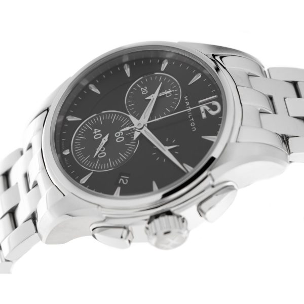 L’elegante orologio da uomo Hamilton Jazzmaster Chrono Quartz รจ un vero capolavoro di design e precisione. Realizzato con cura artigianale, questo modello rappresenta l’eccellenza della collezione Hamilton, rinomata per la sua raffinatezza e stile distintivo. La cassa in acciaio dalle linee pulite e il quadrante nero conferiscono un’eleganza senza tempo, mentre il cinturino in acciaio grigio si adatta perfettamente al polso con comfort e stile. Dotato di movimento al quarzo di alta precisione, questo orologio offre prestazioni affidabili e accurate. Resistente all’acqua fino a 100 metri, รจ ideale per chi ricerca un accessorio sofisticato e funzionale per ogni occasione. Con il suo diametro di 42mm, questo Hamilton Jazzmaster รจ un simbolo di classe e raffinatezza che non passa inosservato.