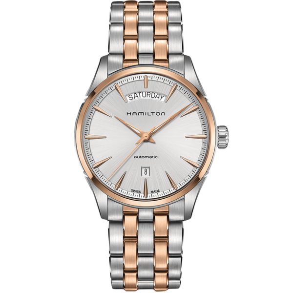 L’orologio da uomo Hamilton Jazzmaster Day Date Auto Carica automatica รจ un’eccellenza di stile e prestigio. Con cassa in acciaio da 42mm e un raffinato quadrante argentato senza numeri, incorniciato da vetro zaffiro e lunetta in oro e acciaio, questo modello incarna l’eleganza senza tempo del marchio Hamilton. Dotato del calibro Hamilton H-40 con 25 pietre, assicura prestazioni impeccabili e affidabilitร nel tempo. Resistente all’acqua fino a 5 bar e con chiusura a fibbia pieghevole in acciaio, questo orologio unisce design raffinato e tecnologia all’avanguardia, confermando la sua posizione di oggetto di lusso imprescindibile per l’uomo sofisticato e attento ai dettagli.
