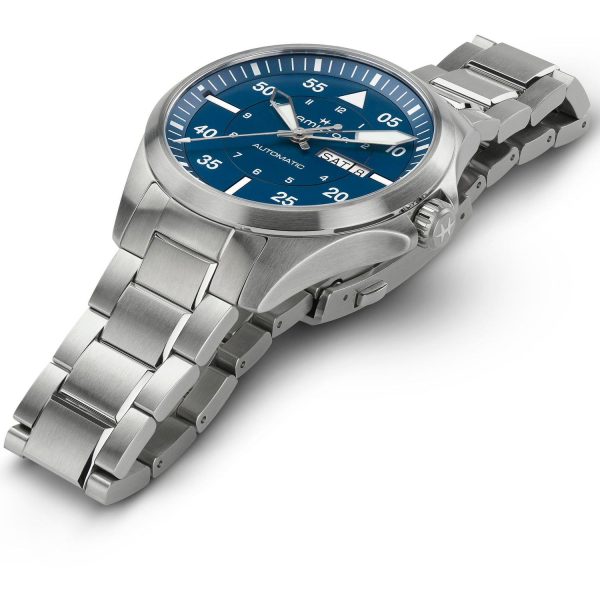 L’orologio Hamilton Khaki Aviation Pilot Day Date Auto Carica automatica incarna l’eleganza e la precisione tipiche del brand. Con cassa e cinturino in acciaio, quadrante blu con numeri arabi e vetro zaffiro, questo modello combina stile e funzionalitร in modo impeccabile. Resistente all’acqua fino a 100 metri, con diametro di 42 mm e spessore di 12.1 mm, รจ dotato del calibro H-30 per un’accuratezza senza pari. Un pezzo distintivo per gli amanti degli orologi di alta gamma, che apprezzeranno l’artigianalitร e l’affidabilitร di questo orologio Hamilton, simbolo di prestigio e raffinatezza.
